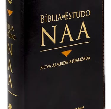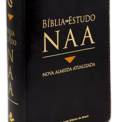Bíblia com ferramentas de estudo para leitura individual ou em grupo, na tradução NAA. Inclui Notas e referências cruzadas, Concordância, Mapas, Notas, Introdução aos livros. Bíblia de Estudo NAA Capa em couro sintético, preta. 2880 páginas, formato 13.5 × 20 cm. A Nova Almeida Atualizada (NAA), publicada pela SBB em 2017, combina a solidez da tradição Almeida com linguagem clara e contemporânea.